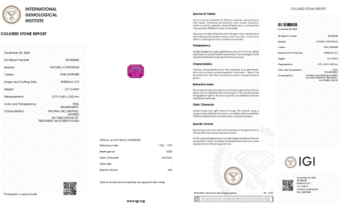 IGI Certified Natural & Unheated Pink Sapphire Gemstone-MADAGASCAR