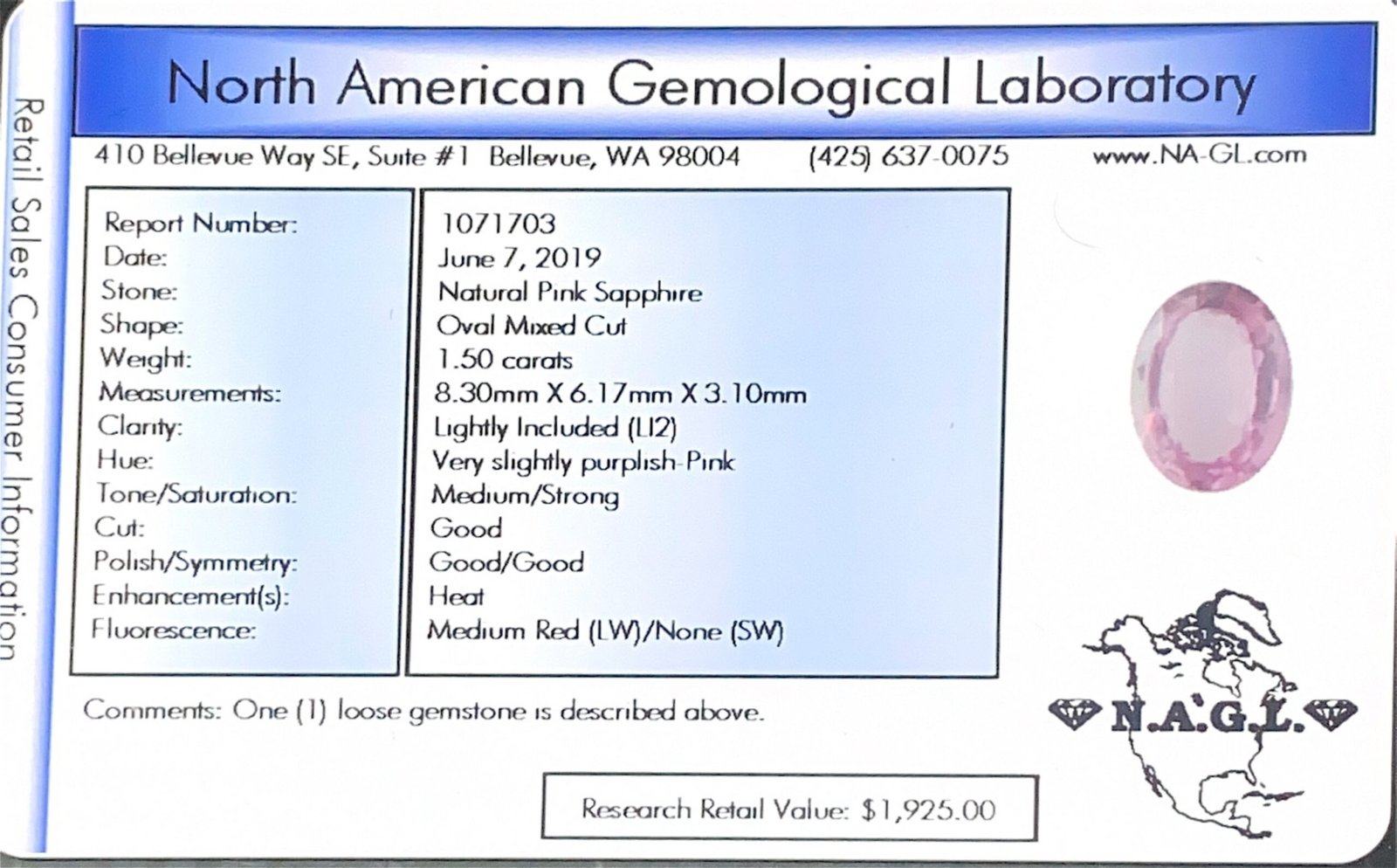 NAGL Certified Natural & Unheated Pink Sapphire Gemstone – Madagascar