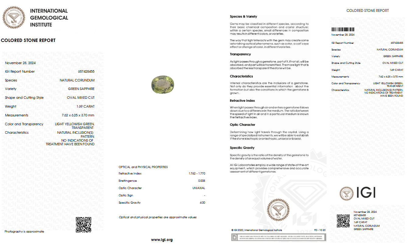 IGI Certified Natural & Unheated Green Sapphire Gemstone-MADAGASCAR