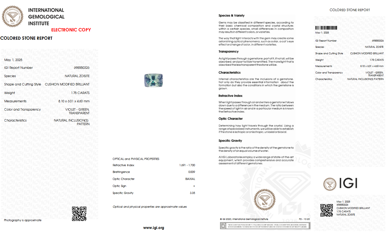 IGI Certified Natural & Unheated Green Zoisite Gemstone-Africa