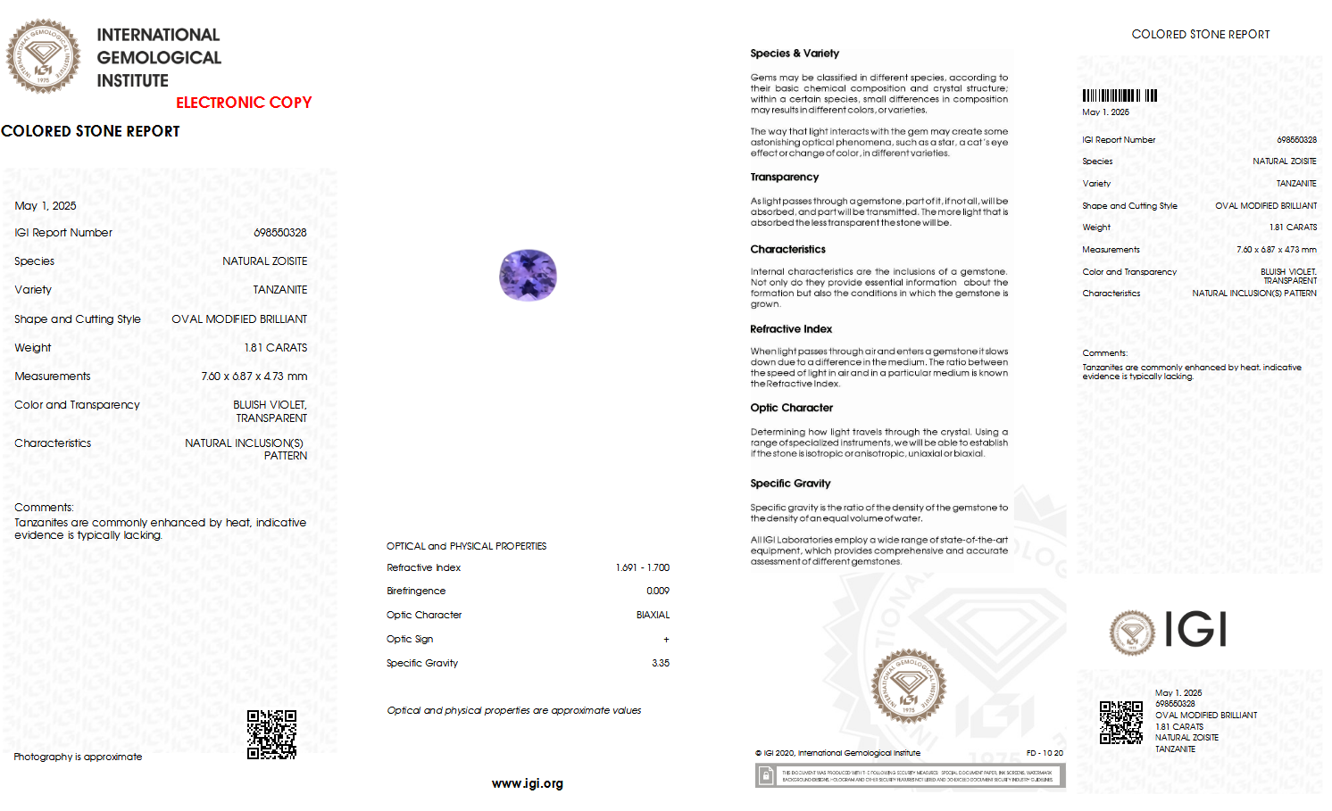 IGI Certified Natural & Unheated Blue Tanzanite Gemstone-Tanzania
