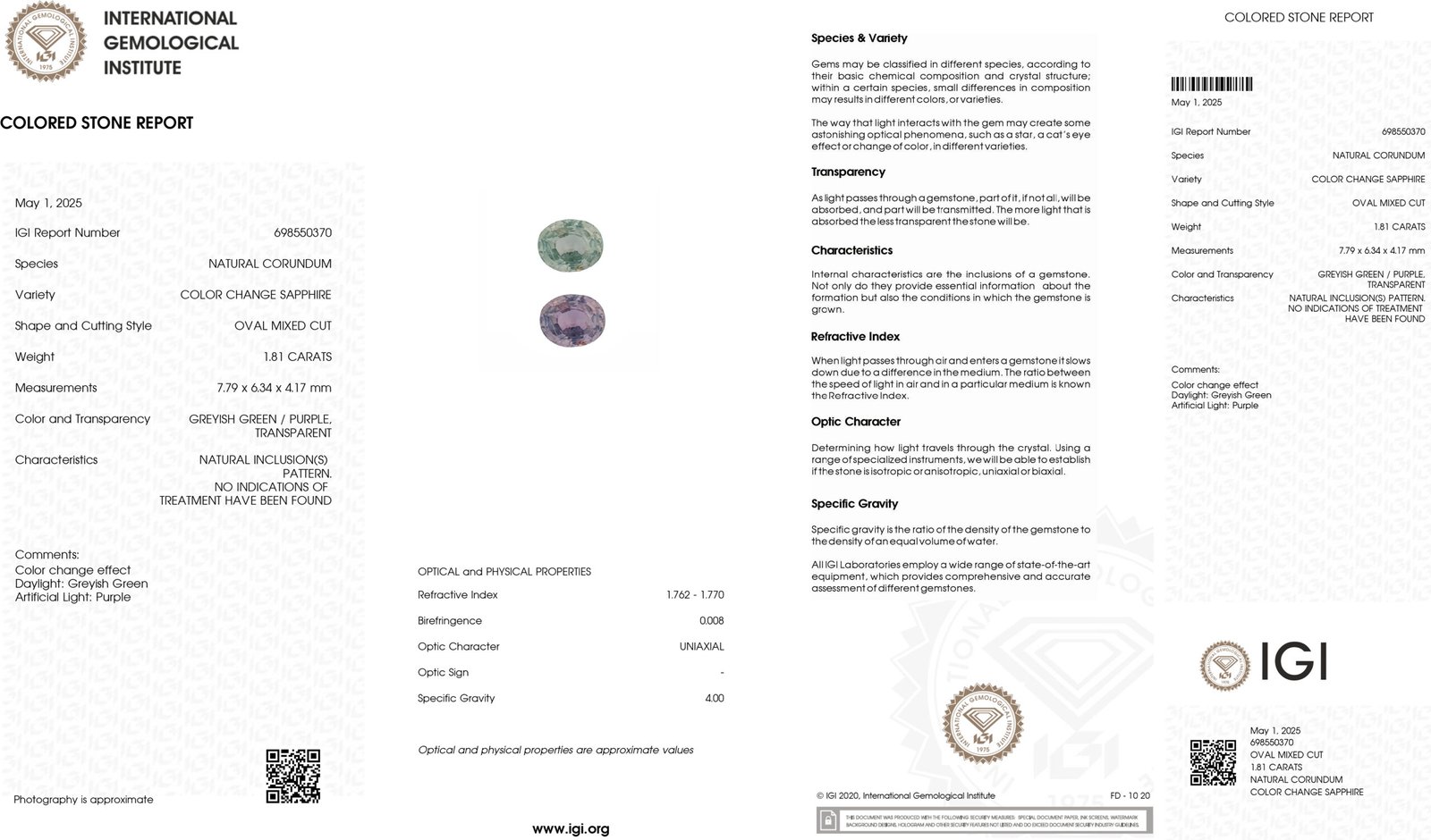 IGI Certified Natural & Unheated Purple Color Change Sapphire Gemstone-Madagascar