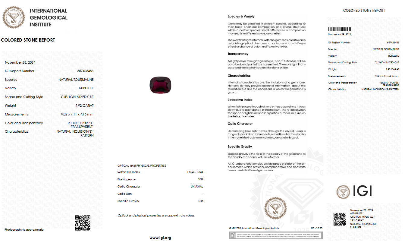 IGI Certified Natural & Unheated Red Purple Rubellite Tourmaline Gemstone-AFGHANISTAN