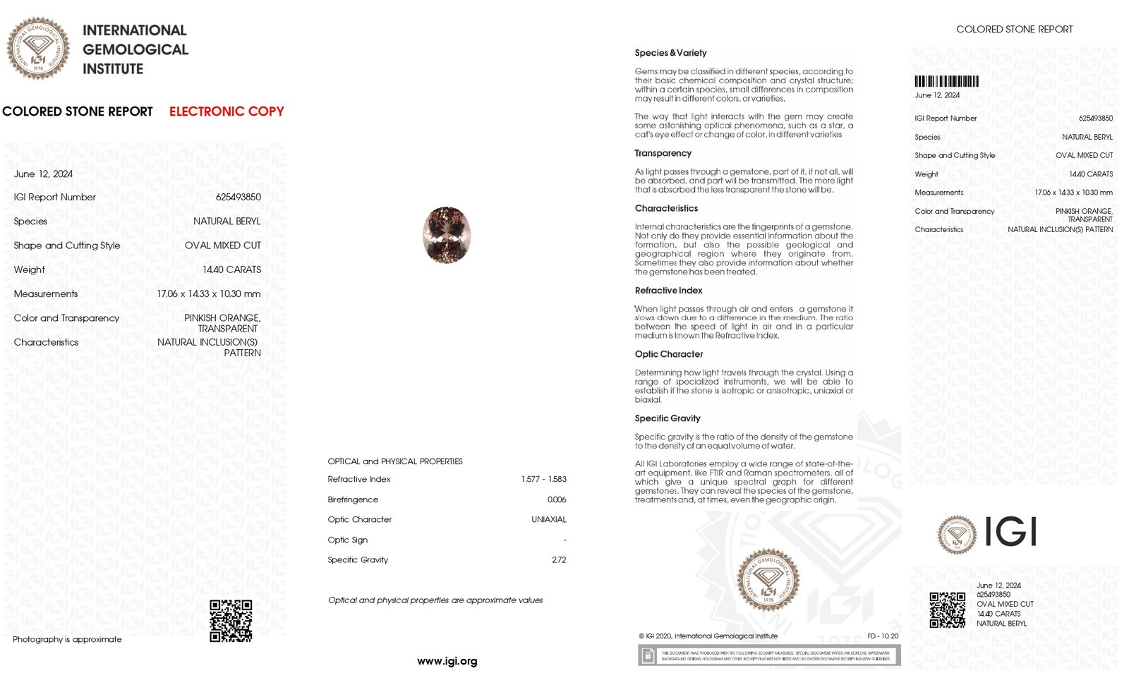 IGI Certified Natural & Unheated Pink Beryl Gemstone-Brazil