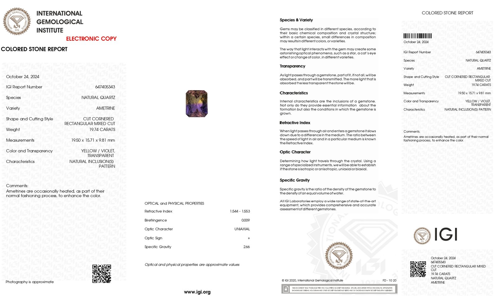 IGI Certified Natural & Unheated Bi Color Ametrine Gemstone – Brazil