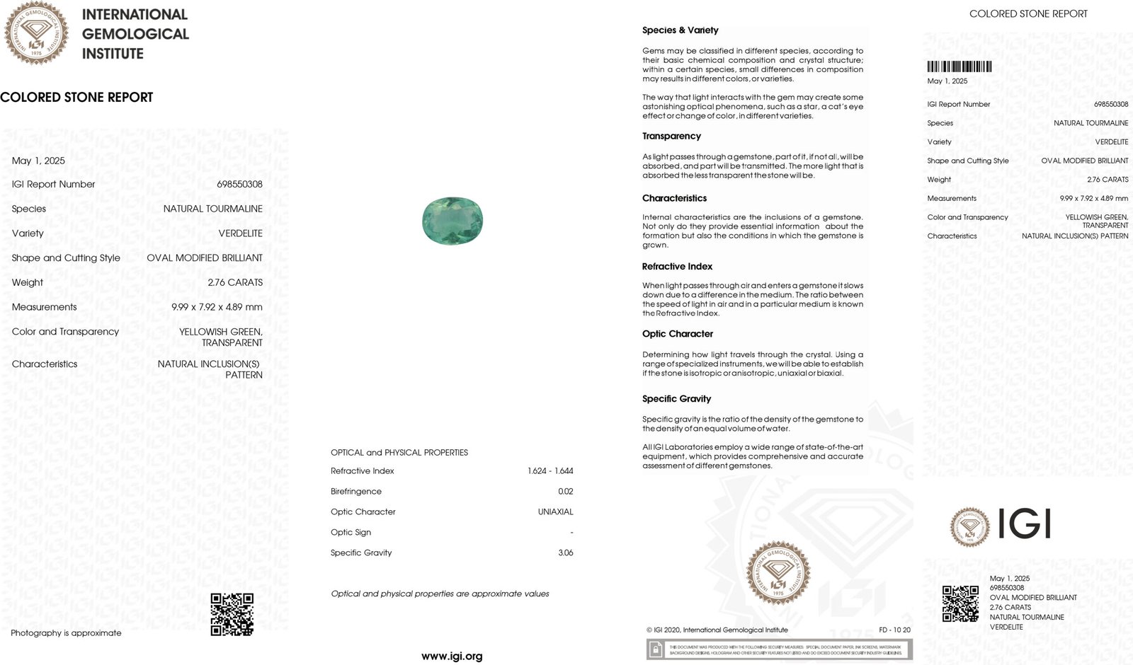 IGI Certified Natural & Unheated Green Tourmaline Gemstone-Afghanistan