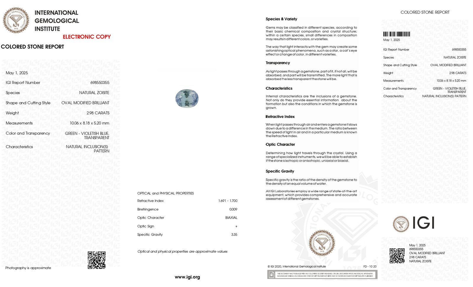 IGI Certified Natural & Unheated Blue Zoisite Gemstone-Africa
