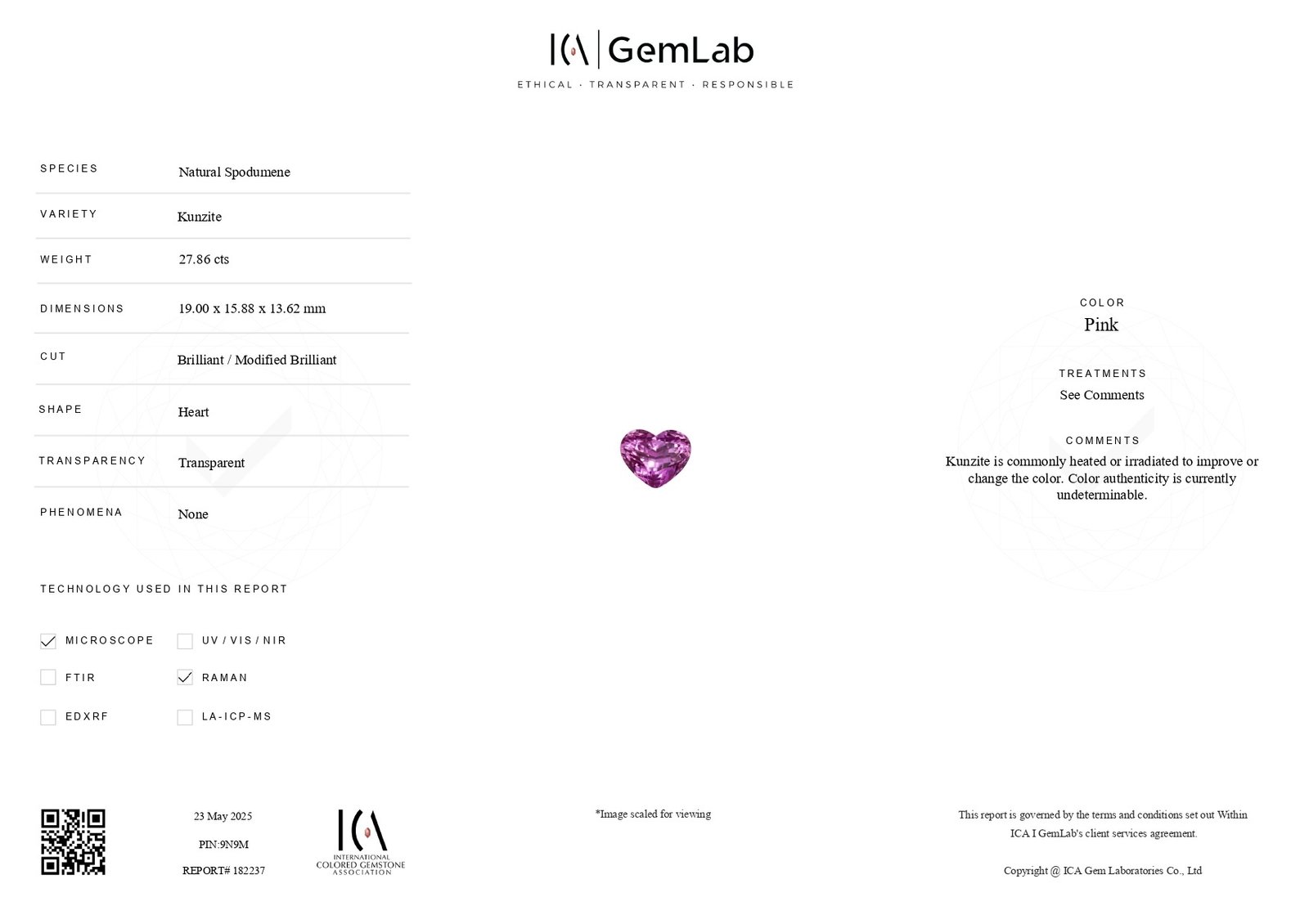 ICA Certified Natural & Unheated Purple Pink Kunzite Gemstone - Afghanistan