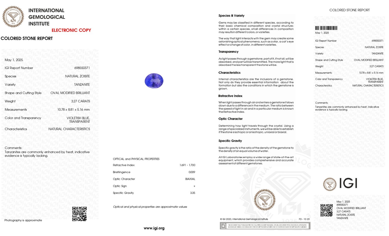 IGI Certified Natural & Unheated Blue Tanzanite Gemstone-Tanzania