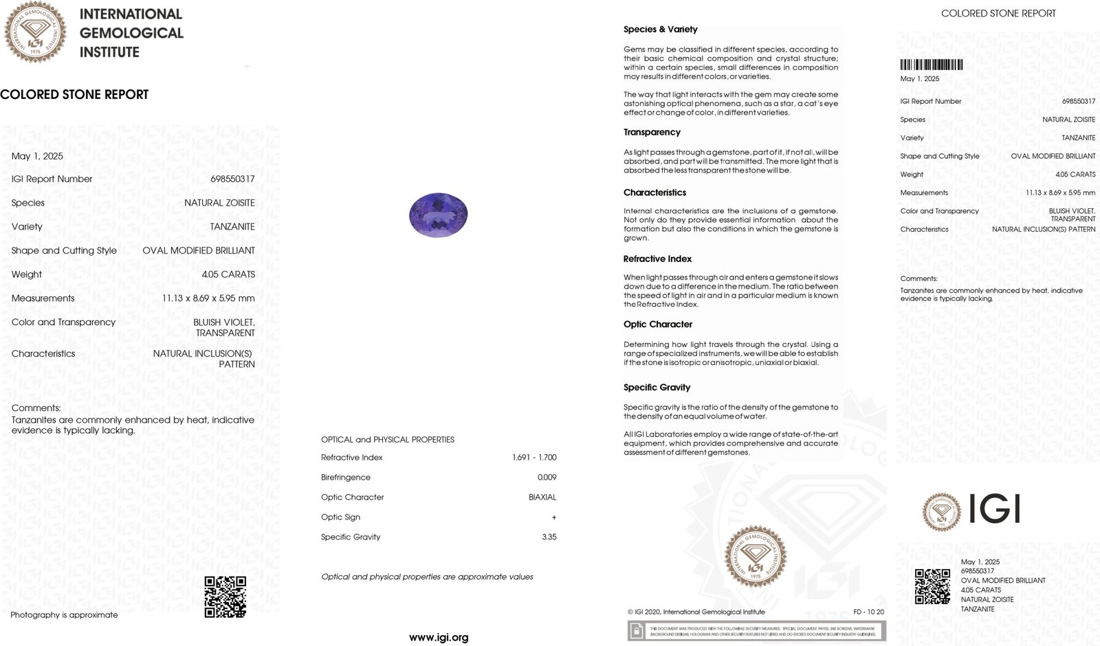 IGI Certified Natural & Unheated Blue Tanzanite Gemstone-Tanzania