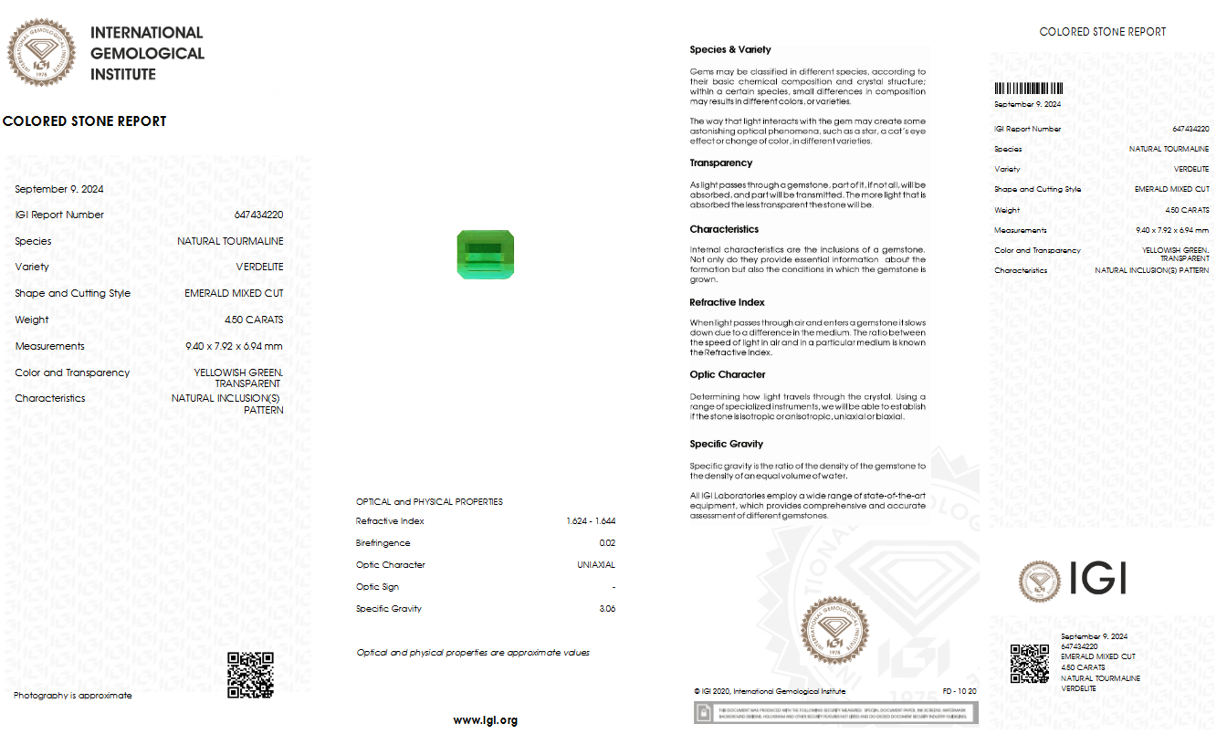 IGI Certified Natural & Unheated Green Tourmaline Gemstone-AFGHANISTAN