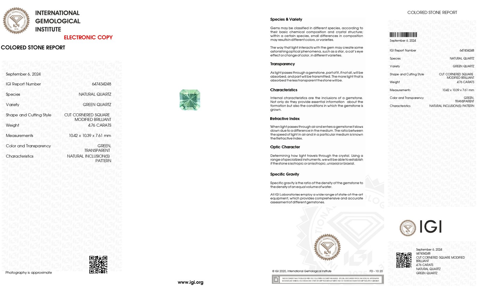IGI Certified Natural & Unheated Green Quartz Gemstone – Brazil