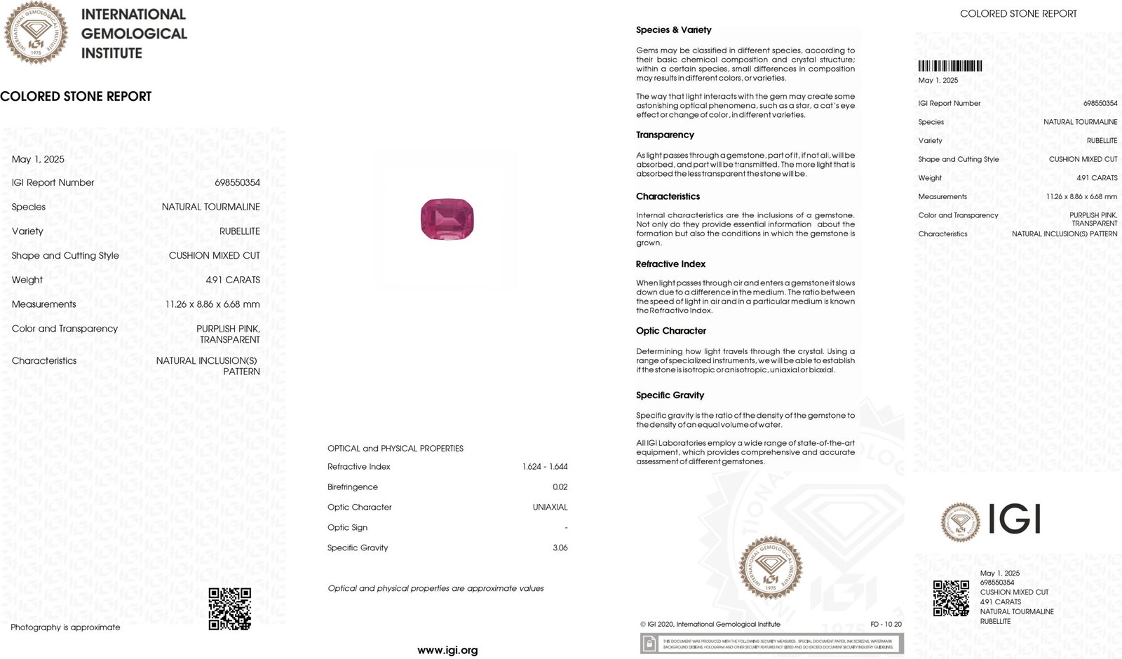 IGI Certified Natural & Unheated Pink Rubellite Tourmaline Gemstone -Afghanistan