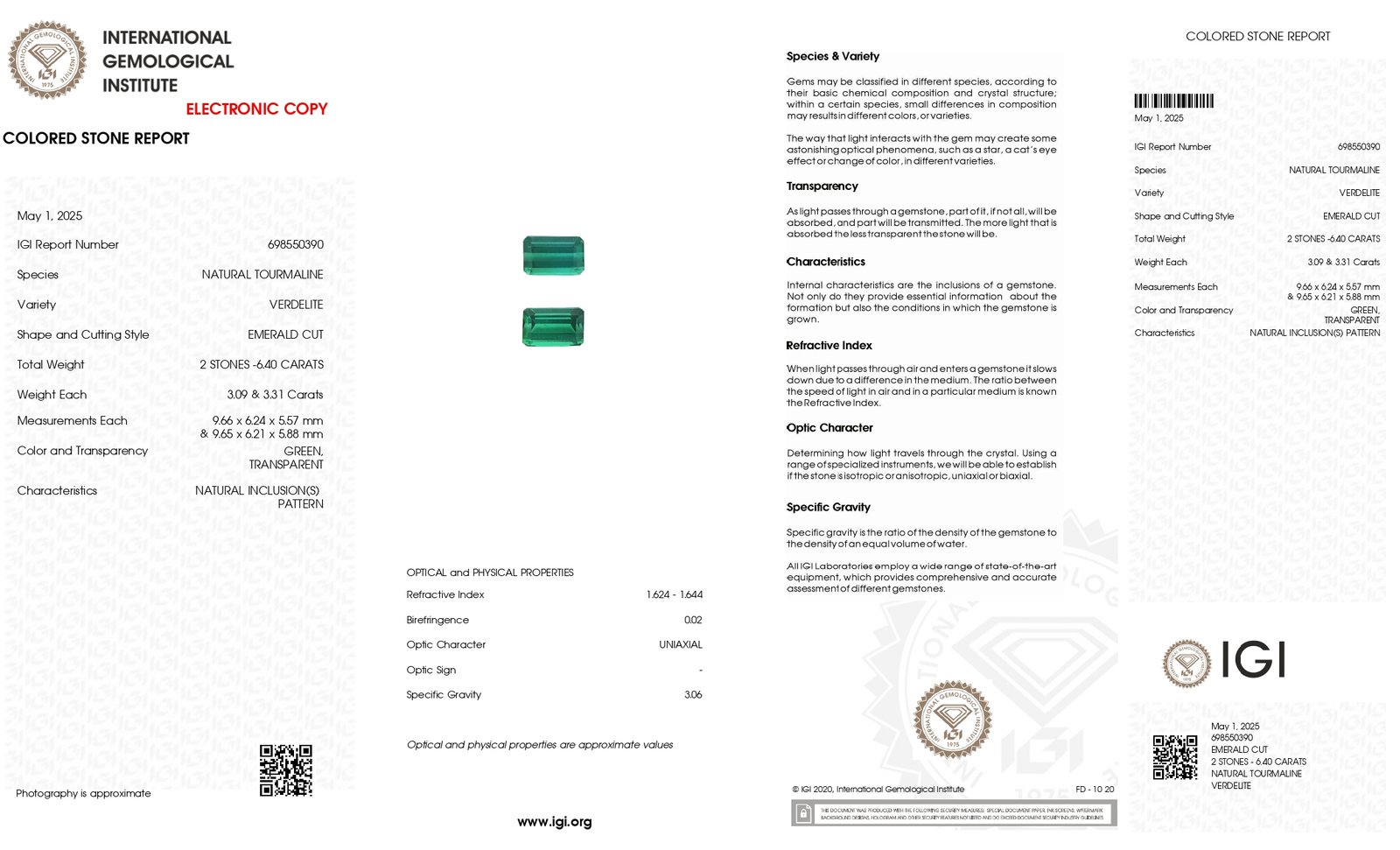IGI Certified Natural & Unheated Green Tourmaline Gemstone Pair – Afghanistan