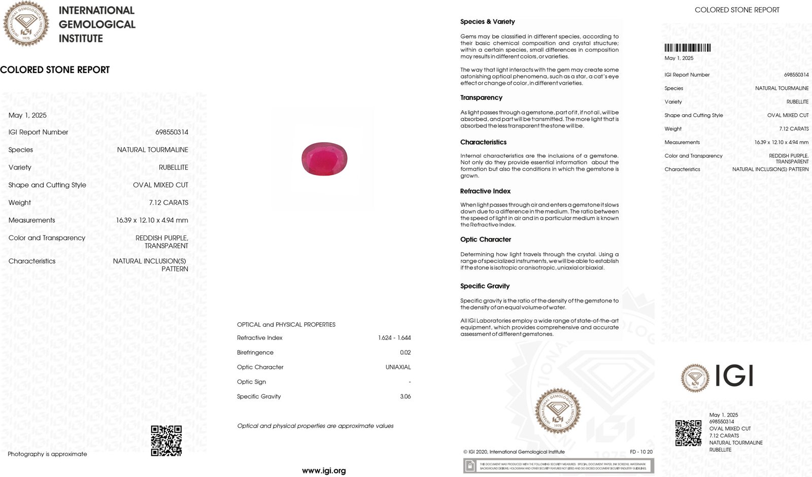 IGI Certified Natural & Unheated Pink Rubellite Tourmaline Gemstone-AFGHANISTAN